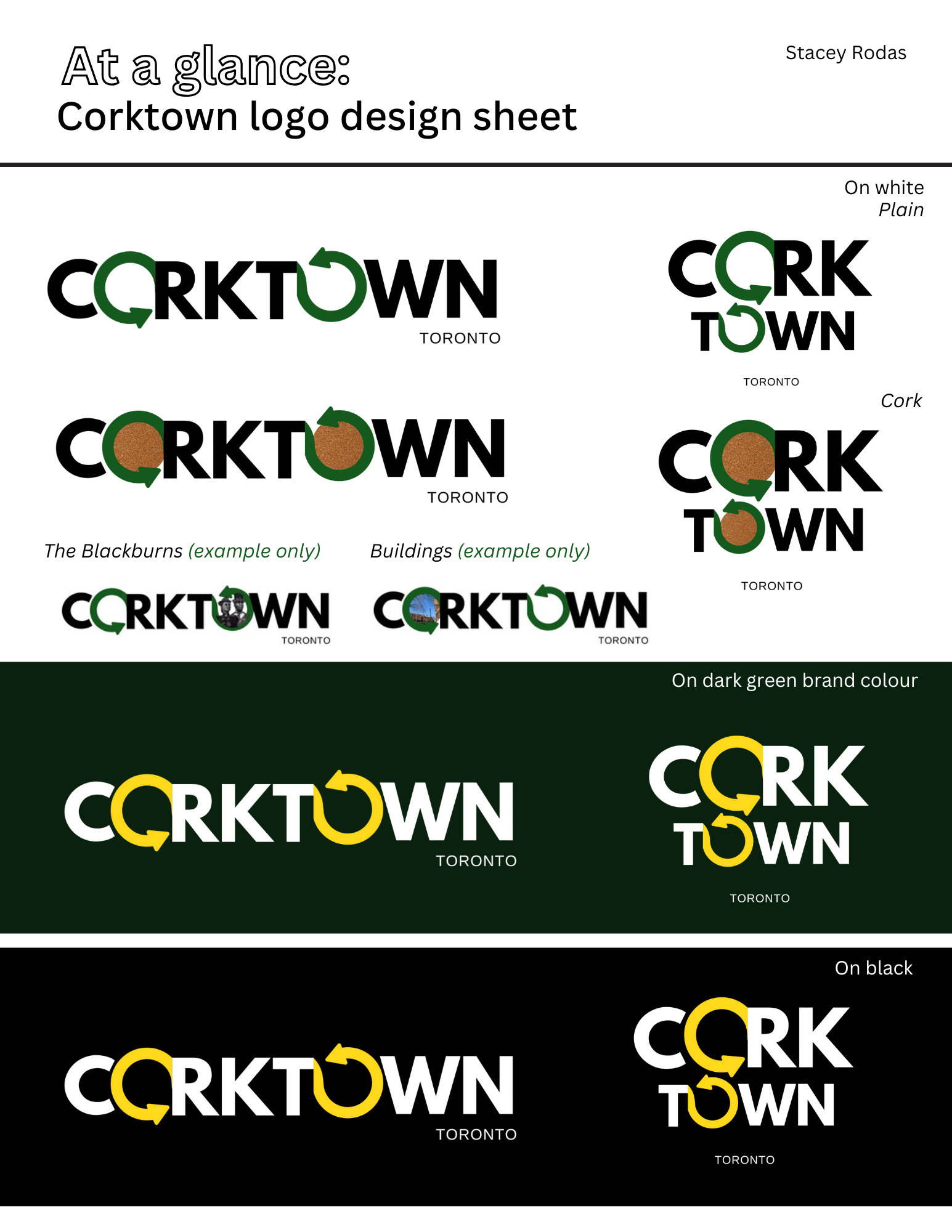 This simple yet eyecatching logo, which was inspired by the brief, represents the cycle of forward change and renewal while appreciating all aspects of our shared past. From its Indigenous, Black, and Irish roots to its present day form and future plans, Corktown forever moves forward while also looking back. The two "O Arrows" in the logo most certainly remind us of this.