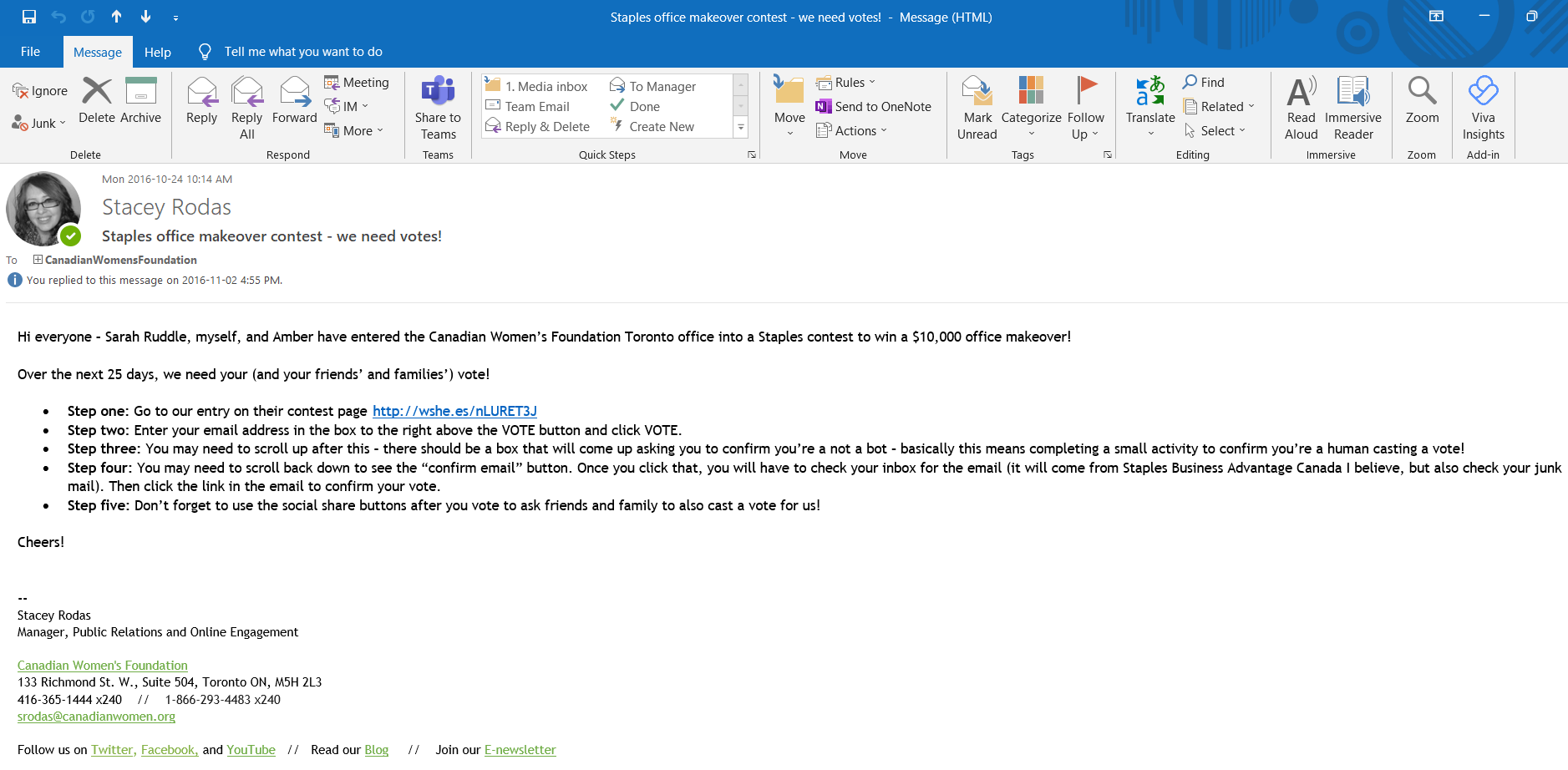 Welcome to the portfolio of award-winning Toronto-based strategic communicator Stacey Rodas. Her specialties include Public Relations, Internal and External Strategic Communications, Marketing, Social Media, Digital Engagement, Fundraising and Development, and Change Management. She is currently working toward becoming a fully-bilingual communicator | Elle est communicatrice stratégique primée qui habite à Toronto